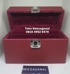 Struktur kotak dibuat kokoh untuk melindungi isi dari goresan dan benturan ringan, sementara warna merah memberikan kesan premium dan eksklusif. Tanpa cover LM (sertifikat logam mulia), kotak ini sangat fleksibel digunakan untuk berbagai jenis perhiasan seperti cincin, kalung, gelang, hingga emas batangan custom.