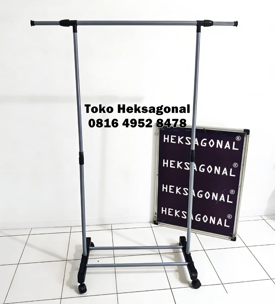 Stand Hanger Rak Gawang Gawangan Jemuran Gantungan Double yang digunakan oleh semua rumah tangga, rak gawang jemuran gantung double ini juga bisa ditaruh dalam kamar yang bisa memisahkan antara baju bersih dan baju yang baru dipakai.