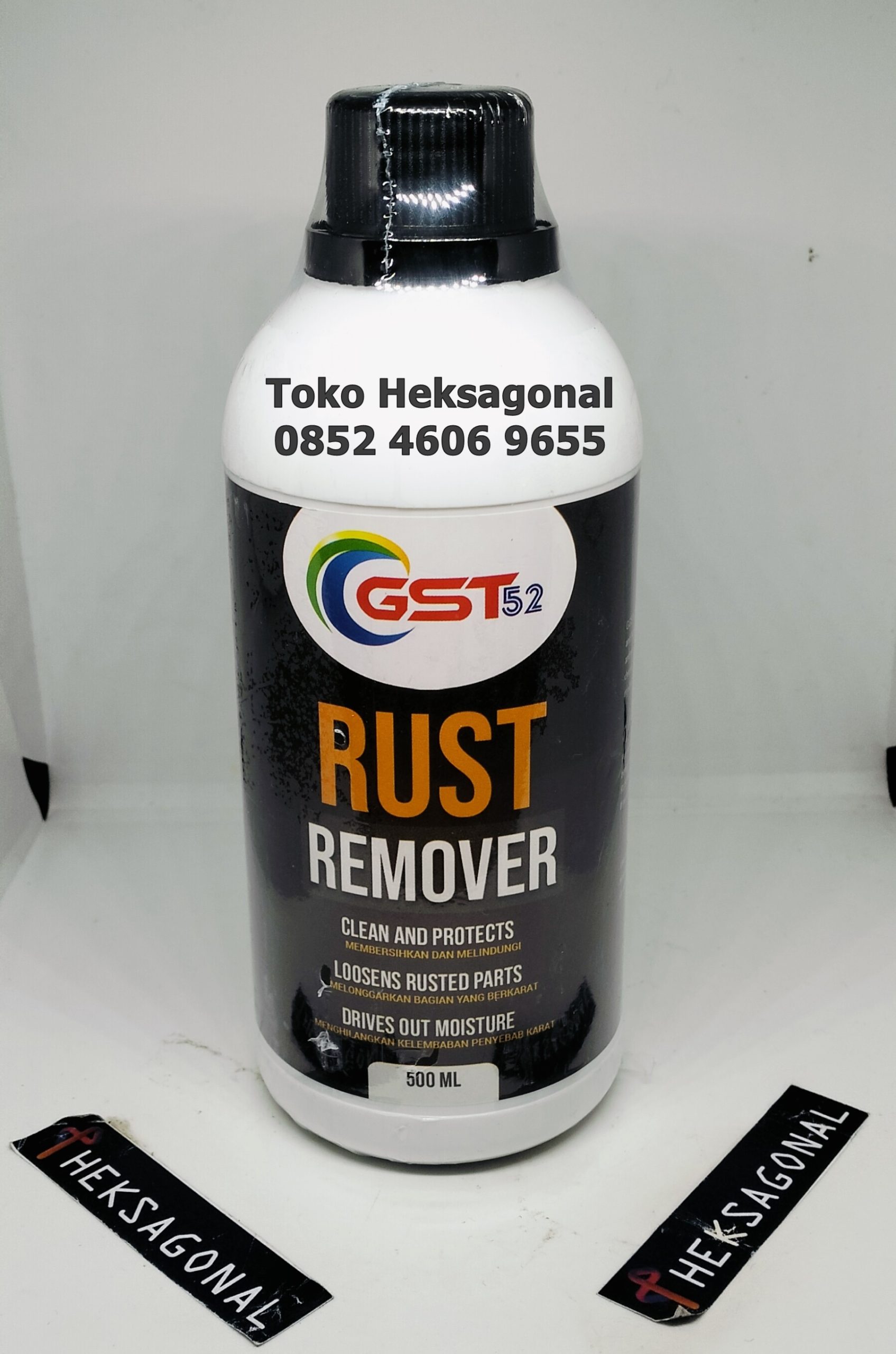 Untuk permukaan karat yg permukaannya tebal, gunakan GST52 Rust Remover tanpa diencerkan. Untuk permukaan Alumunium yg kondisi karatnya tipis gunakan dgn perbandingan 1:2 atau 1:4 dengan air. Gosok menggunakan sikat jika diperlukan.